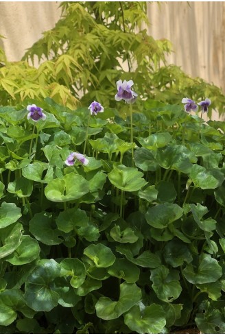 Viola banksii est une violette à feuilles de lierre, originaire d'Australie, attractive pour les papillons et vigoureuse elle peut former un couvre-sol dense ou retomber pour habiller poteries et jardinières à l'ombre.