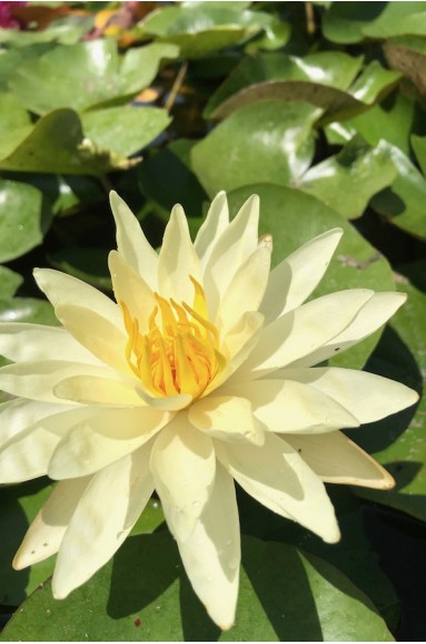 La variété de Nénuphar jaune 'Joey Tomocik' est un hybride américain vigoureux, idéal pour former un bon ombrage de l'eau qui sera bénéfique à l'équilibre du bassin. Ses larges fleurs, pouvant atteindre jusqu'à 15 cm de diamètre sont attractives pour les insectes.